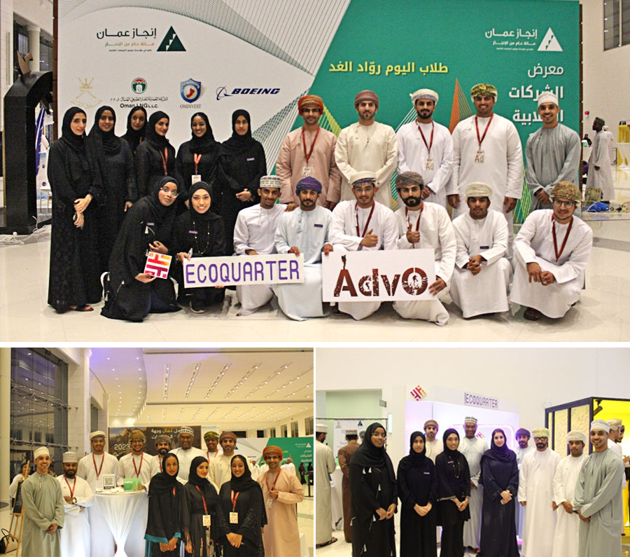 Student`s Companies from CoE Participated at Injaz Oman Exhibition AdvO and Ecoquarter student’s companies from College of Engineering participated at the exhibition of Student`s Companies Competition organized by Injaz Oman from 13 to 15 February 2020. Both companies successfully qualified to the next stage of the competition to be among the 30 best companies for this year. AdvO Company offers an online platform that facilitate the adventure tourism in Oman. The platform brings adventure companies together to assist targeted people to find all services in one hub. Therefore, AdvO application provides a comprehensive information on the adventure companies in Oman with details of their trips. Through theses services, AdvO aims to contribute to the national mission of promoting tourism in Oman. Ecoquarter Company is solving the problem of excess amount of chlorine in the domestic water through its innovative filter “Naqaa”. The filter contains ecofriendly adsorbent material produced based on recycling the date seeds and coconut shells as an outcome of the wooden agricultural waste in Oman. In addition, the casing of the product is made from a new technology by using 3D printers enhanced and integrated by the engineers in the company. The ecofriendly product can remove contaminants, the undesired smell and taste of chlorination and heavy metals transfer to the domestic water through transportation and storage processes. Though this Naqaa product, Ecoquarter Company aims to contribute to the national priorities of recycling and environment protection. These companies are supervised by Mr Ibrahim Issa Al Balushi, Senior Lecturer, Department of Professional Development & Humanities.
